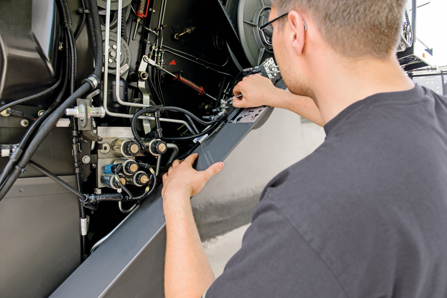 Datorită funcției de service de la distanță, mașina dvs. trimite o notificare către atelierul CLAAS înainte de intervalul de service următor. În plus, intervalele de întreținere sunt, desigur, stocate în documentația mașinii. Service-ul profesional regulat minimizează posibilitatea de nefuncționare, deoarece lipsa consumabilelor sau a pieselor uzate sunt detectate într-un stadiu incipient.
