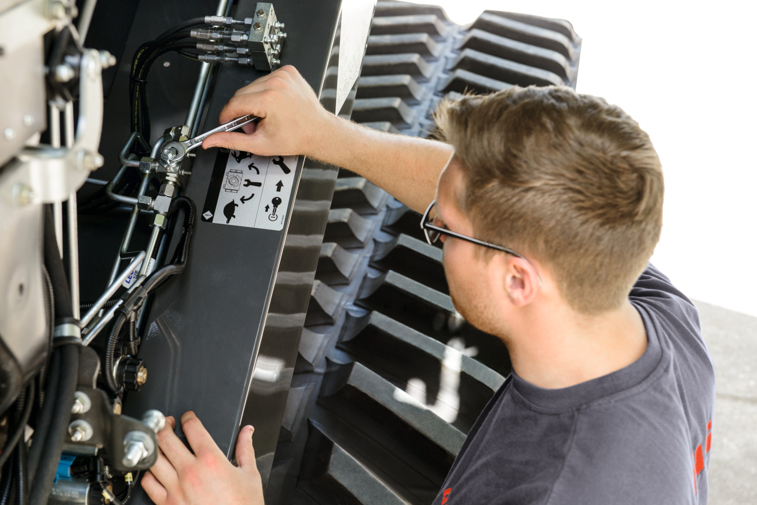 Efectuarea intretineriiMunca unui specialist CLAAS depășește cu mult cerințele instrucțiunilor de utilizare: pe lângă o gamă largă de servicii de întreținere, un tehnician CLAAS vă va oferi consultatii complete și individuale. Cunoștințele sale se bazează în special pe cele mai actuale informații și experiența din rețeaua CLAAS la nivel mondial. În plus, dispune de instrumentele speciale necesare pentru a asigura indeplinirea optima a serviciilor.